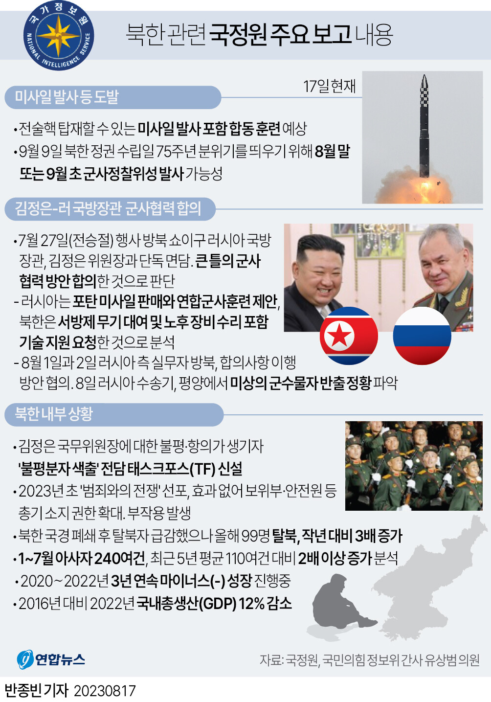 또 올해 7월까지 북한에서 아사(餓死)한 사람이 최근 5년 평균치보다 2배 이상 늘어나는 등 북한 내부 식량 사정이 악화됐다는 설명이 나오면서 내부 분위기가 흉흉한 것으로 분석했다.