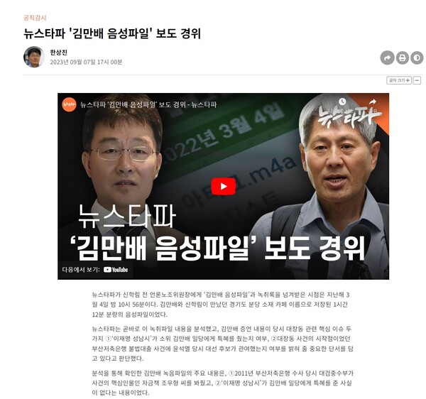 이미 여권에서는 이를 지적하고 있다. 11일 국민의힘 당 지도부에서는 당시 민주당 대선 후보였던 이재명 대표와의 공모 여부를 밝히는 것은 물론이고, ‘뉴스타파’의 조작된 인터뷰를 퍼뜨린 민주당 의원들을 수사해야 한다는 목소리도 나왔다.