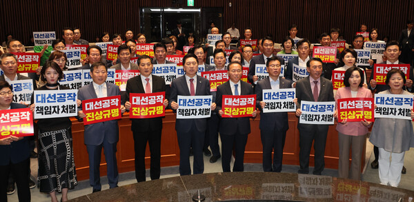 국민의힘은 압박 수위를 최고조로 끌어올리는 분위기다. 의혹이 불거지자마자 긴급 대책회의를 소집한 국민의힘은 ‘대선 공작 게이트 진상조사단’까지 발족했다.