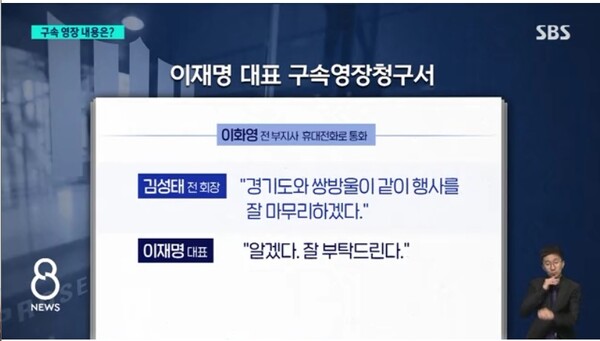 또 그해 7월, 김 전 회장이 방북 비용 대납 사실 확인을 위해 “경기도와 쌍방울이 같이 행사를 잘 마무리하겠다”라고 말했을 때는, 이 대표가 “잘 부탁드린다”는 반응을 보였다고 전했다.