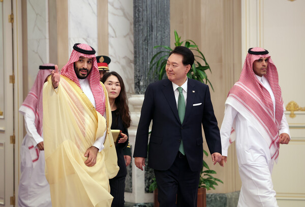 [더퍼블릭=김미희 기자]윤석열 대통령이 사우디아라비아를 국빈 방문 중인 가운데, 22일(현지시간) 실권자 무함마드 빈 살만 왕세자와 공식 오찬에 우리나라 기업인을 동석시켜 투자 협력 논의를 이어간 것으로 전해졌다.