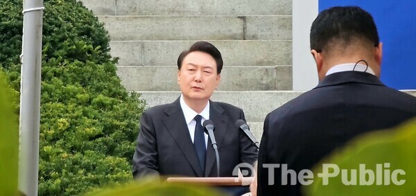 [더퍼블릭=최얼 기자]사우디-카타르 순방일정을 마친 윤석열 대통령이 26일 현직 대통령으로는 처음으로 박정희 전 대통령 서거 추도식에 참석했다. 현직 대통령으론 최초로 박정희 전 대통령 추도식에 참석한 것이다. 윤 대통령은 중동순방일정을 마치자마자 이 행사에 참여했다.