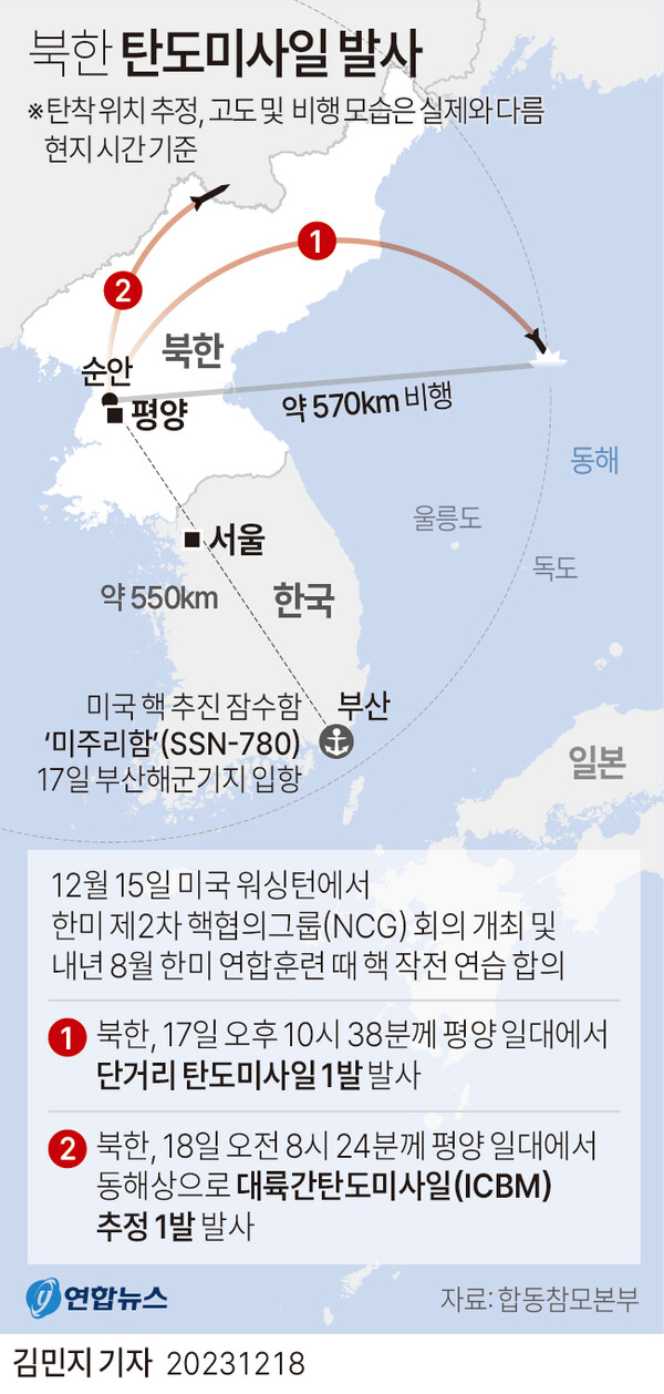 앞서 김태효 국가안보실 1차장은 제2차 한미 핵협의그룹(NCG) 회의 참석차 이달 14일(현지시간) 미국에 입국하면서 취재진에게 “12월에도 북한의 ICBM 발사 가능성이 있다고 생각한다”고 밝힌 바 있다.