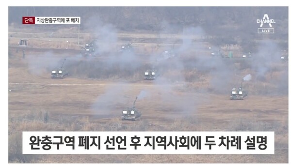 [더퍼블릭=김미희 기자]군이 이달 말부터 최전방 지역에 포를 배치하기로 한 것으로 알려졌다. 11일 채널A 단독 보도에 따르면 우리 군은 9.19 남북 군사합의로 중단했던 사격 훈련을, 6년 만에 지상에서도 재개한다고 보도했다.
