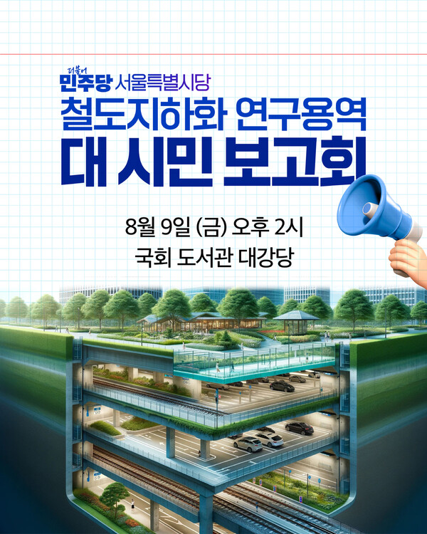 [더퍼블릭=이정우 기자] 더불어민주당 서울특별시당 지상철도지하화특별위원회(위원장·국회의원 오기형/서울 도봉구을/국회 기획재정위원회)는 오는 8월 9일(금) 오후 2시 국회 도서관 대강당(B1)에서 ‘철도지하화 연구용역 대 시민 보고회’를 개최한다.