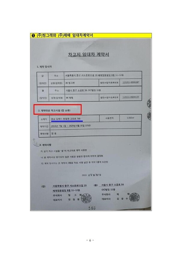 <본지>가 입수한 빙그레와 제때의 ‘차고지 임대차 계약서’에 따르면, 빙그레는 지난 2019년 7월 1일부터 2029년 6월 30일까지 제때에 차고시설 등을 임차해주는 임대차 계약을 체결했다.
