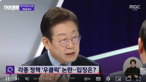 [더퍼블릭=김영덕 기자]더불어민주당 이재명 대표가 19일 MBC ‘백분토론’의 발언을 두고 여당인 국민의힘에서 일제히 비판이 쏟아졌다.