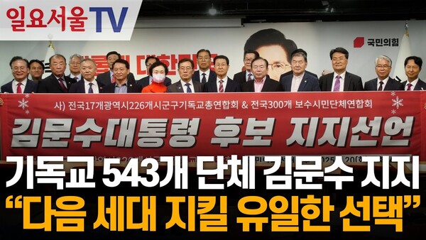 [더퍼블릭=정진철 기자] 전국 17개 광역 시도 및 226개 시군 기독교총연합회와 전국 보수 기독교 300개 단체 연합 등 총 543개 기독교 단체가 지난 5월 20일, 김문수 후보에 대한 차기 대통령 지지를 공식 선언했다. 이들은 "무너지는 대한민국의 정체성을 바로 세우고 다음 세대를 지킬 유일한 선택은 김문수 후보"라고 강조하며 지지 이유를 밝혔다.