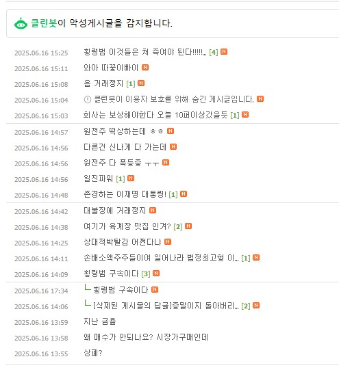 이에 주주들은 “집단 소송을 준비해야 한다”, “오늘 원전주 상향중인데…정지 않됐으면 올랐을 듯”, “회사는 보상해야 한다”, “소액주주들이여 일어나라” 등의 비판을 쏟아내고 있다.