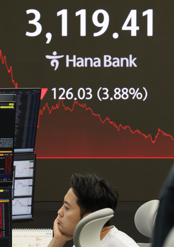 지난 1일 코스피는 전일 대비 126.03포인트(3.88%) 급락한 3,119.41로 한주 거래를 마감했다. 유가증권시장에서 외국인과 기관이 각각 6천524억원, 1조720억원을 순매도하며 지수를 끌어 내렸다. 개인은 1조6천283억원을 순매수하며 저가 매수에 나섰다.