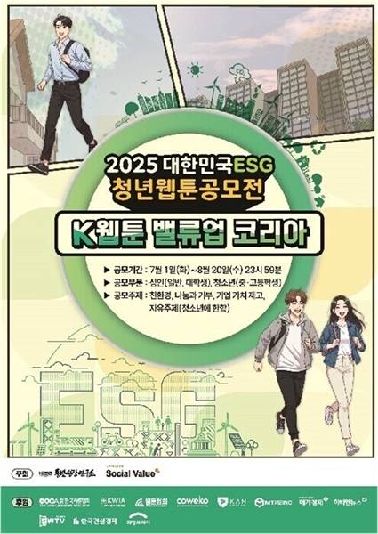 동반성장연구소(이사장 정운찬 전 국무총리)와 소셜밸류가 공동 주최하는 ‘2025 대한민국 ESG 청년웹툰공모전’이 이달 20일 마감한다.