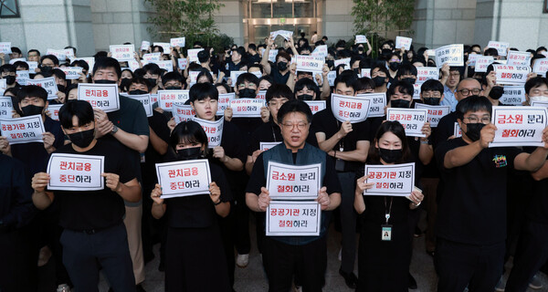 당장 지난 9일에는 금감원 직원 수백 명이 출근 전 검은 옷을 입고 로비에 모여 조직개편안에 반대하는 집회를 개최하기도 했는데, 이날에는 금감원 전 직원의 약 30%에 해당하는 700여명이 참석한 것으로 알려졌다.