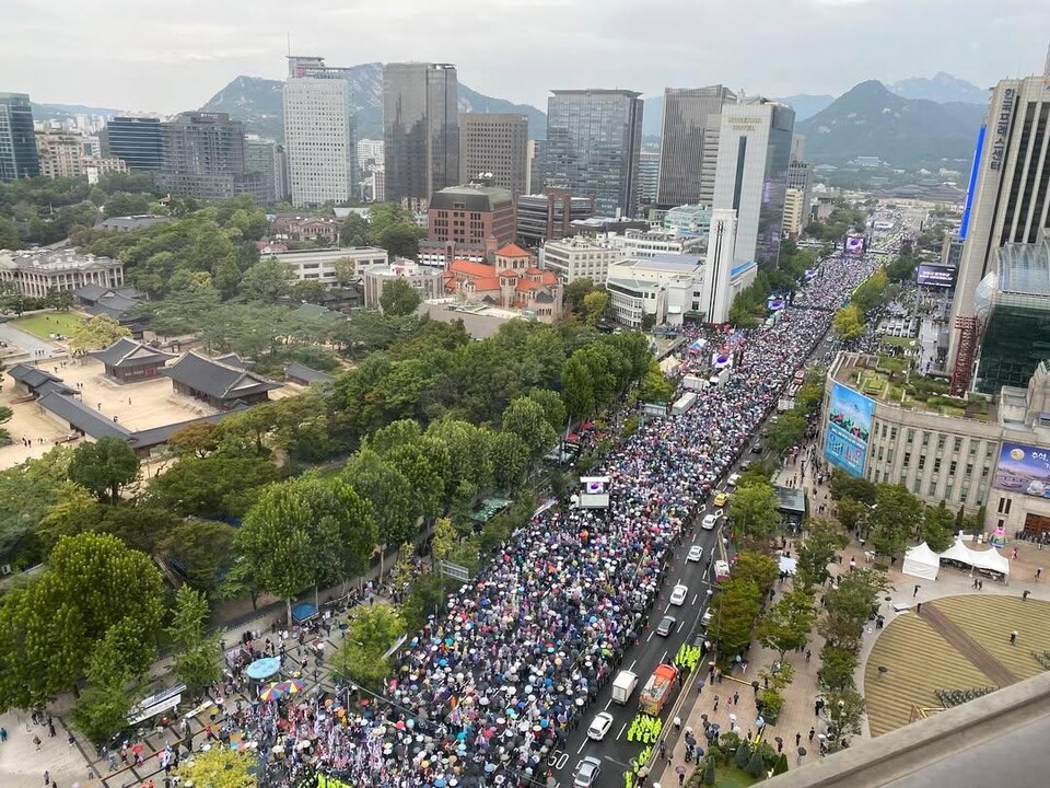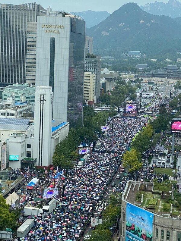 10월3일 개천절 애국행진 거리행진 광화문광장 서울시청 용산 삼각지역 윤석열대통령 석방하라 국민저항권 국민대회 광화문국민대회/ 영상출처=유튜브품앗이
