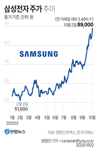 삼성전자와 SK하이닉스 주가 또한 불을 뿜었다. 지금은 추석 연휴로 휴장인 상태지만, 삼성전자는 8만9000원으로 전일대비 상승(+3.49%) 마감했다. 2일 한국거래소 기준 삼성전자는 전 거래일 대비 4.65% 오른 9만원에 거래되기도 했다. 이는 52주 신고가로, 이에 따라 시가총액도 532조원을 기록하며 530조원을 넘어섰다.