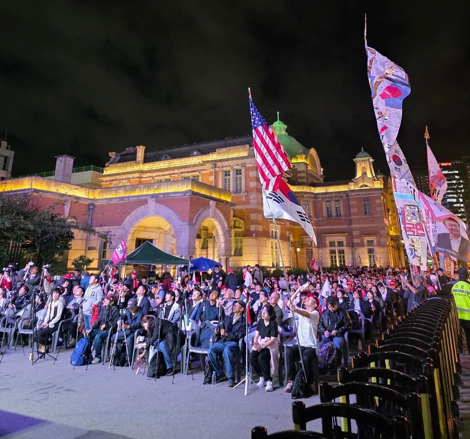[더퍼블릭=정진철 기자] 10월 14일 저녁 8시부터 다음 날 새벽까지 서울 종각역과 서울역 일대에서 '찰리커크 정신계승 집회'가 철야로 진행됐다. 부정선거·부정방지대(부방대TV)가 주최한 이번 집회에 자유와 혁신, 자유대학, 전군연, ROTC애국동지회, 고교연합, 전투경찰구국동지회, 선관위서버까국민운동본부, 횃불청년단, 민초결사대 등 많은 단체가 참여했다.