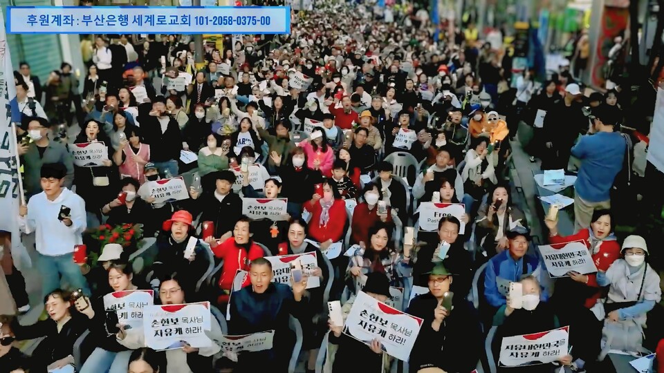 [더퍼블릭=정진철 기자] 부산 세계로교회 손현보 목사 구속을 '종교 탄압'으로 규정하고 즉각 석방을 요구하는 대규모 집회, '손현보 목사 석방 촉구 및 종교탄압 규탄대회'가 지난 10월 26일 주일 오후 3시 부산 광복로 패션거리에서 열렸다. 집회는 손 목사에 대한 공직선거법 위반 혐의 구속의 부당성을 규탄하고 포괄적 차별금지법(차금법) 반대 등 보수 기독교계의 목소리를 결집하는 장이 되었다.