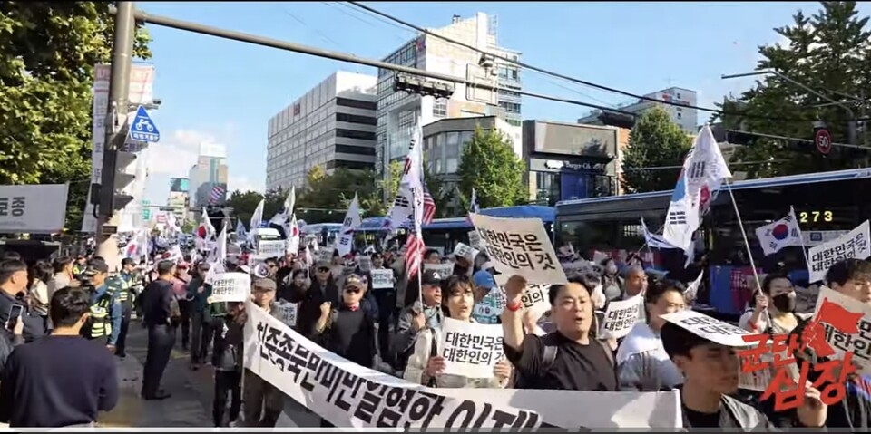 영상에 담긴 구호와 노래는 이재명 정권에 대한 강한 불만과 함께 '자유'와 '진실'을 강조하는 내용이 주를 이뤘다.