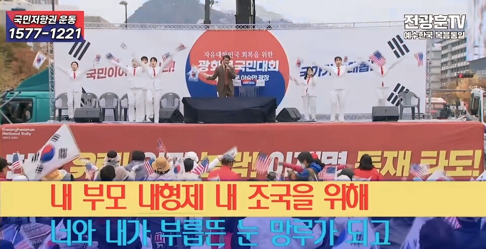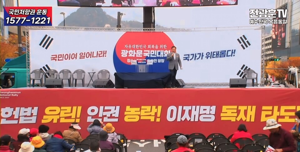 주 연사로 나선 대국본 전광훈 국민혁명의장은 현 정권에 대한 강도 높은 비판을 쏟아냈다.