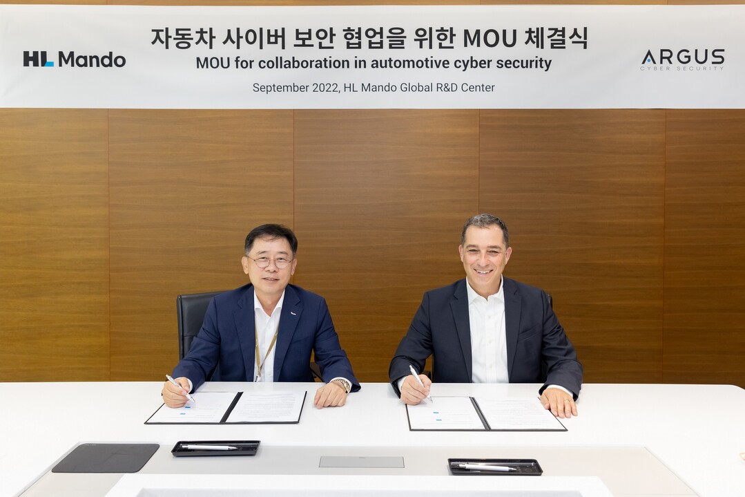 또 이번 MOU를 통해 올해 1월 채택된 WP.29(유엔 유럽 경제 위원회 산하 엑스퍼트 그룹)의 규제 만족도 기대하고 있다. HL만도는 아르거스와 기술 협력을 통해 유럽 사이버 보안 인증 절차를 추진할 계획이다. WP.29 차량 사이버 보안 규제는 지난 7월부터 신차를 대상으로 유럽에서 의무화됐으며 오는 2024년 7월부터는 유럽의 모든 차량을 규제한다.