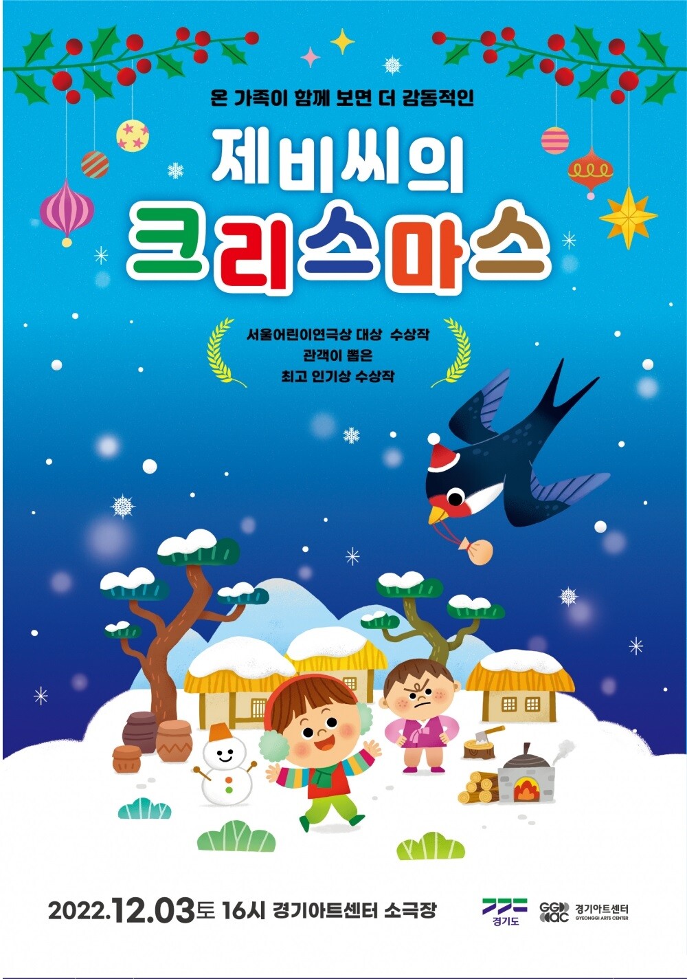 [더퍼블릭 = 김강석 기자] 경기아트센터는 오는 12월 3일 어린이 국악뮤지컬 ‘제비씨의 크리스마스’를 소극장에서 공연한다고 1일 밝혔다.
