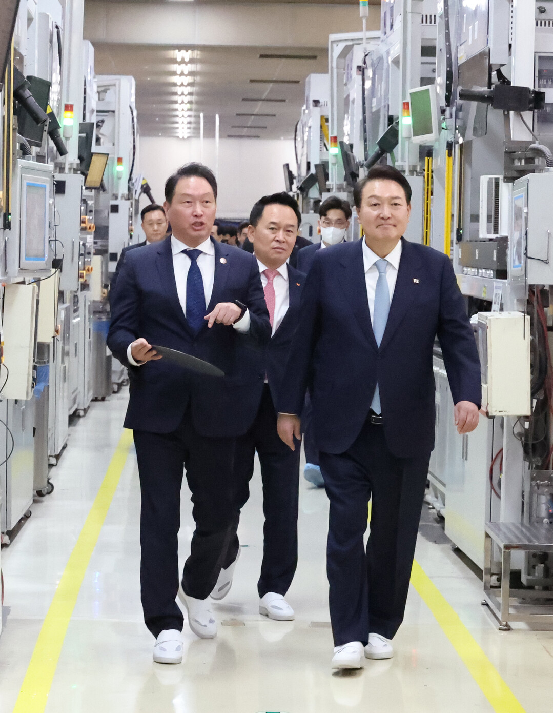 윤 대통령은 SK실트론의 실리콘 웨이퍼 생산시설을 둘러보기도 했다. 아울러 R&D(연구개발) 실증플랜트를 방문해선 "기술 독립과 해외 수출을 위해 노력해달라"고 당부했다. 실증플랜트는 반도체용 '초순수'를 국산화하기 위해 시운전 중인 생산시설이다.